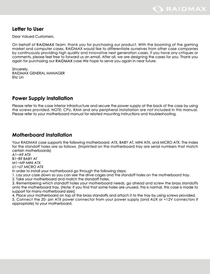 Raidmax SAGITTARIUS-ATX-WB Datasheet Page 2